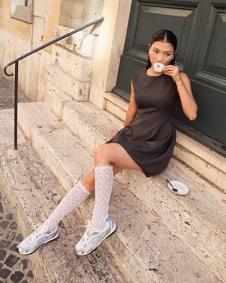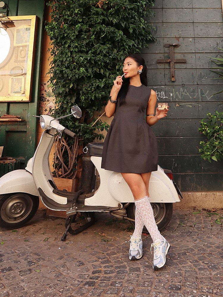 操刀過多位藝人封面的時尚造型師Tiff,憑藉敏銳的流行嗅覺與精準的造型掌控力,長期活躍於時尚產業第一線。平時她也經常在社群分享私服穿搭,是不少女生心中的風格典範。近期Tiff在義大利旅行時,就穿上New Balance的話題新作204L,以一身俐落且個性的裙裝搭配蕾絲長襪,腳踩銀曜藍204L展現個人的不費力精緻感。