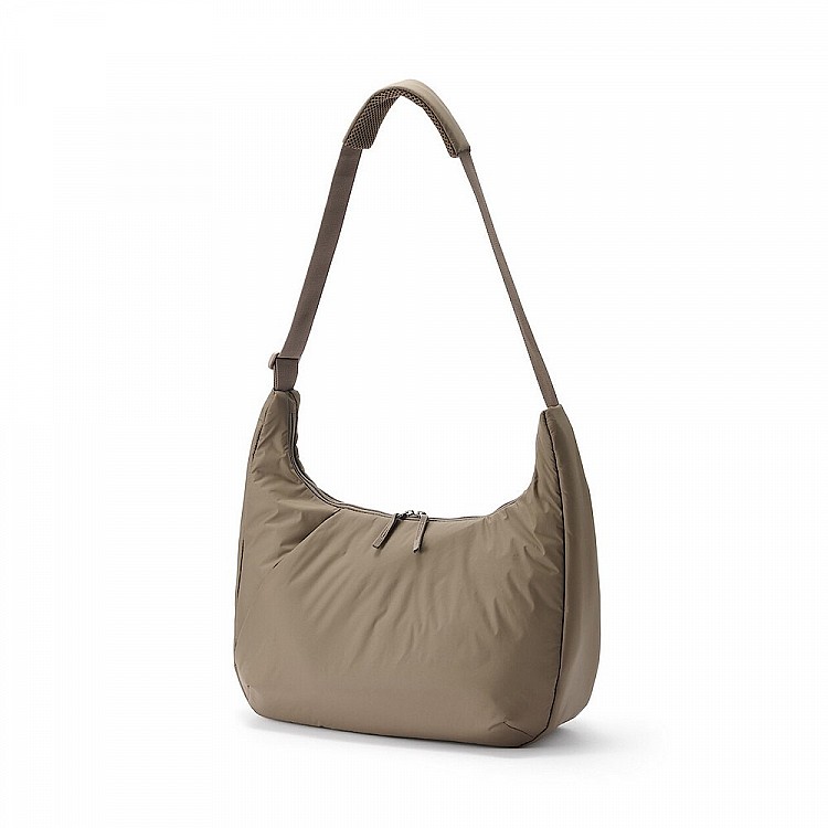 這款單肩包不只是簡單的日常包,肩帶可調節,能肩背或手提使用。包款表布採用100%再生尼龍,內襯與填充物也全使用再生聚酯纖維製成,並具防撥水效果,小雨天通勤也能安心,五顆星推薦給機車族、通勤族!