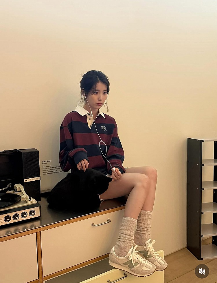至於該如何在秋冬裝上做搭配呢?首先看到IU在社群上分享的471穿搭照片,以海軍藍跟勃根地紅的條紋有領上衣配上短褲,上腳薄荷綠NB 471,展現出輕盈又不失層次的學院氣息。整體造型在復古與青春之間取得完美平衡。