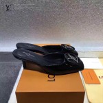 LV女鞋高跟拖鞋 新款涼鞋 高級牛漆皮 羊皮內裏+墊腳 意大利進口真皮大底 跟高:5厘米 碼數35-40