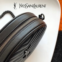 YSL 610436 原版皮聖羅蘭 新款可愛的圓形迷妳肩背斜挎包,魚子醬牛皮材質,V形紋絎縫包縫,造型精致小巧超級好看 尺寸17X17X5.5cm